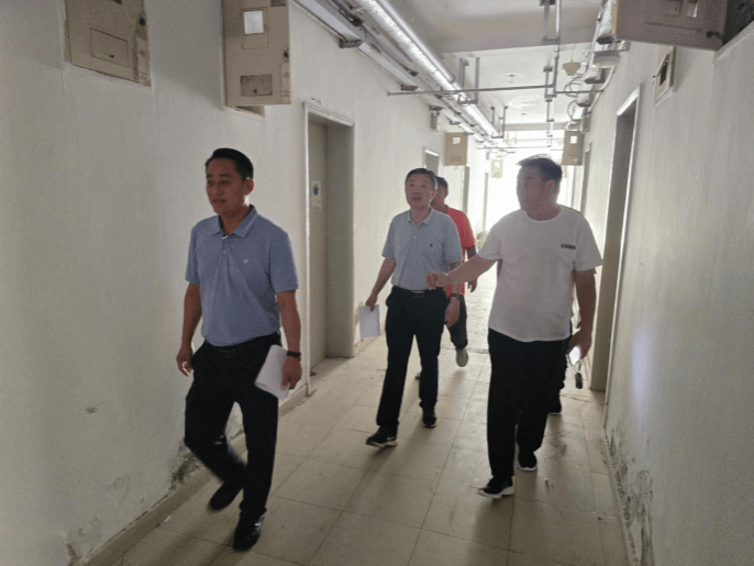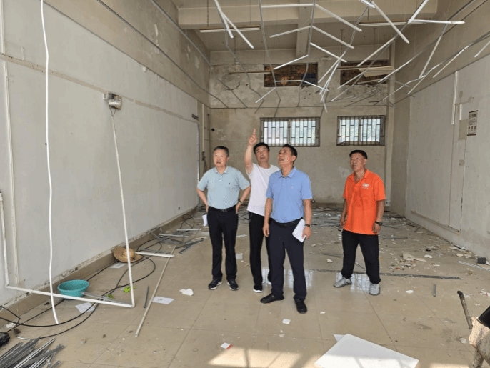 院長丁煦生、副院長張永鋒、副院長兼財務總監王俊敏、黨委副書記郭雅娟等領導在相關部門的陪同下,深入教學樓、宿舍樓、體育館會議室等施工現場,詳細了解了教學保障提升改造、體育館會議室修葺及新生宿舍樓改造等項目的具體安排、進展情況以及所面臨的困難和挑戰。丁院長認真聽取了現場匯報,對暑期校園提升改造工作給予了充分肯定,提出“嚴把安全生產,保障施工質量”的重要指示,并對大家在高溫酷暑下堅守崗位、默默奉獻的精神表示了高度贊揚。