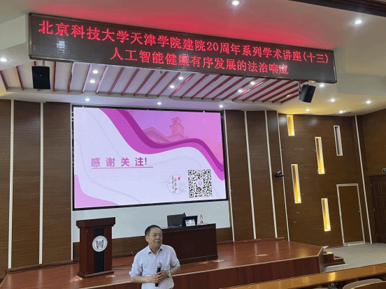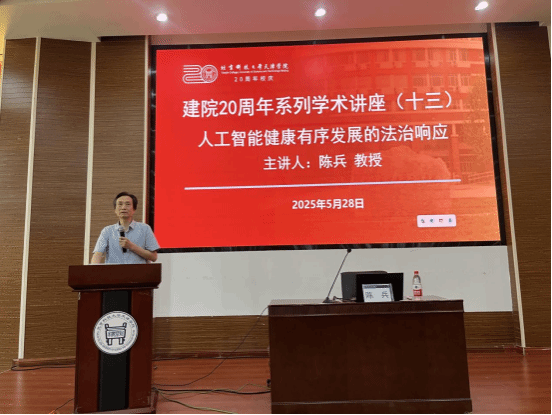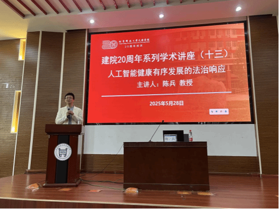 2025年5月28日15時,建院20周年系列學術講座第十三講在理工館學術報告廳成功舉辦。南開大學法學院副院長陳兵教授為師生們帶來了一場以“人工智能健康有序發展的法治響應”為主題的精彩講座。此次講座由法律系系主任朱京安教授主持,法律系部分教師及150余名學生參加了本次活動。