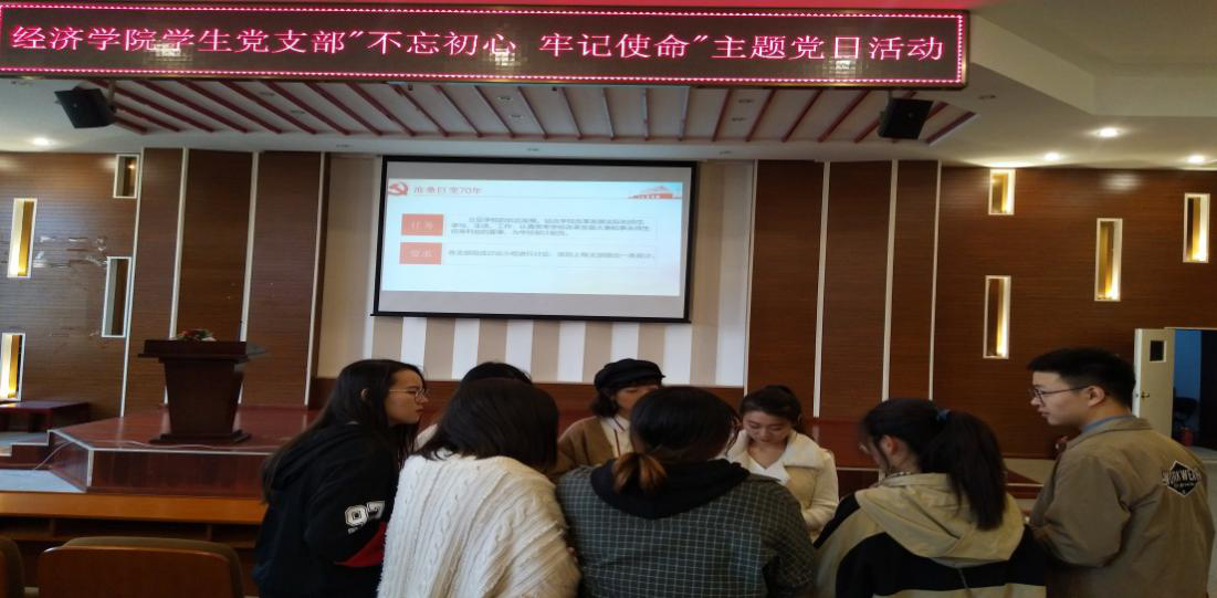 經(jīng)濟(jì)學(xué)院學(xué)生第二黨支部于10月18日下午,舉行了“不忘初心、牢記使命”主題黨日活動(dòng)。本次活動(dòng)以“支部書(shū)記領(lǐng)學(xué)、支部黨員分享學(xué)、全體黨員共同學(xué)”的方式進(jìn)行,主題聚焦、內(nèi)容豐富,討論熱烈、動(dòng)情深刻,達(dá)到了預(yù)期...